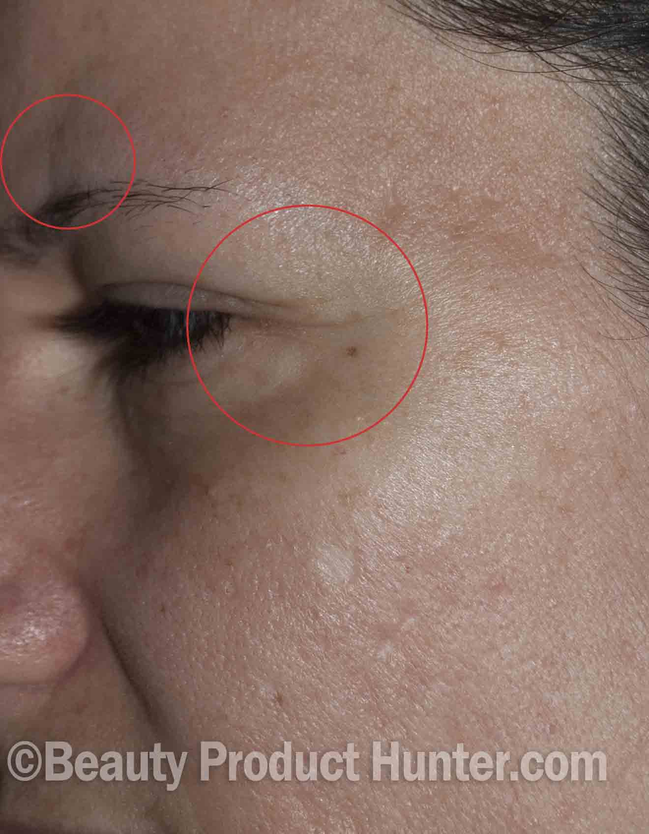 This is the anti-aging night cream. And it is very different from the Day Cream, in that is a yellowish-brown in color and also its feel. To apply it you need to start from a clean face. Leave your face damp or else this product won’t penetrate your skin. Just as above use four to five pumps and work in your moistened skin. As you will notice, you can keep massaging it in for quite some time as your skin is humid, the cream keeps sliding off-like. You can stop rubbing it in and in a few seconds the cream dries leaving your skin a bit taut. Actually it’s more like a mask than a cream.